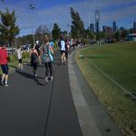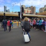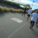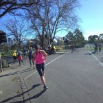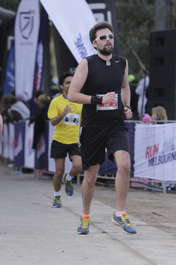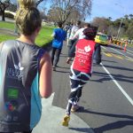 The best part of the course is always the NOVA section, with pumping music and crazy antics. This year they had a “High Five Zone”: a DJ spinning some tunes and NOVA reps wearing big red foam hands that you could high five on the way through. That section is immediately followed by the overpass bridge to the MCG; through here everybody started spontaneously yelling and pumping some noise and excitement into the course. A girl next to me saw a stray NOVA man moving in the corner of her eye and went for a inattentive high five but slapped me in the arm as I was going past. She apologized and we both immediately cracked up laughing about it.