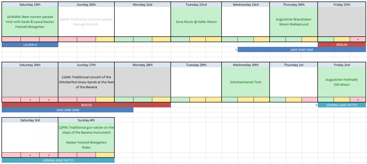 I planned out and mapped a schedule for the entire Oktoberfest period which included expected traffic/peak periods, festival events and visitors. I was not going to miss any opportunity to get among the festivities!