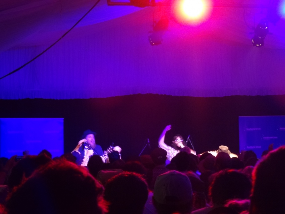 When watching Xavier Rudd we couldn’t help but get the “Rodriguez” vibe – that there were many others surrounding us who had a greater appreciation for his music. Although most of them were pot smoking hippies, they were indeed onto a good thing. Although we were not high (though we may have possibly been due to the incredible amount of second hand pot smoke) his music was still highly energetic and entertaining. The lighting show included very thick lights, the beams of which floated over the crowd and looked just as solid as metal beams. These lights, I imagine, would have been quite something to anyone on drugs. The crowd were particularly pleased when Xavier struck the first chords of “Let Me Be”, a song of which even I was familiar with. The live performance of this song was accurate, eloquent and truly conveyed the vibe in which the recording alludes to. I found this on to be quite enjoyable and would stipulate that if I was more familiar with the rest of his catalogue that I would be equally impressed with his other songs. His show had the expected nods to solidarity and aboriginal relations – the group of aboriginal dancers who accompanied him on stage later on in the set were traditional, yet innovative, and combined with the fast paced music of Rudd made for a new entertaining take on the traditional dances. Of our particular liking was a token white boy who looked like he had just sculled 14 L of red cordial and a bag of pop rocks, as he danced furiously across the stage. What a champion! Rudd’s music and sinful slide guitar fit quite perfectly into the context of a blues festival. A great performance that both fans and non-fans could easily appreciate and groove to (with or without the use of substances).