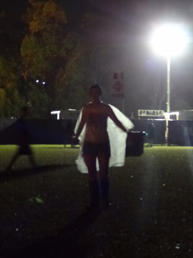 Sarah and I didn’t attentively watch this set, but it provided nice background music while sitting out in the rain. The rain had really settled in by this point. We sat out on a bench in our ponchos and gumboots and I enjoyed an overpriced (delicious) beer. Even with the terrible weather surrounding, it was a perfect and relaxing moment in time. People rushed to the tent to hear ‘Ho Hey’, including a set of over-excited teenage girls who managed to catch the last two seconds of the song.