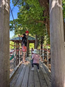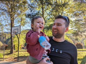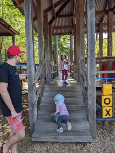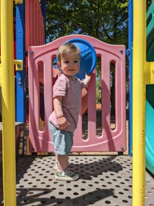 We headed straight for the big playground (after a look at the river and a trip across the bridge, lead by Rachael). Plenty to walk around and Seth did well going up and down the steps. He has otherwise been a bit clingy, we think due to some new teeth coming through, but you wouldn’t know it of a morning as he gleefully stomps laps around the coffee table.