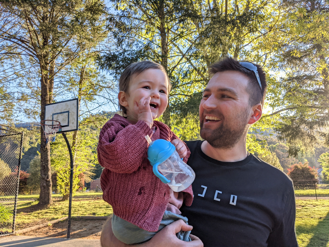 Seth preferred to just watch the madness and sip his water. Daniel’s little girl Maddie, around the same age, is the complete opposite – getting bounced all over the place and teeming around everywhere on her tricycle. She loved Rachael for playing peek-a-boo, paying her special attention and encouraging and helping her to walk.