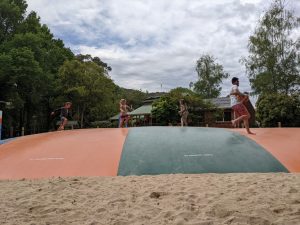 I was carrying Seth, giving him a bounce on the kangaroo hopper and the other kids played “mummy”/”daddy” – involuntary tackles and shoulder hugs on the ground.