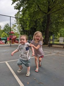All of Rach’s park friends were leaving today. It was a slow moving morning today and it was about 10:30am when the kids got out to the playground. I finished up dishes and then joined shortly after.