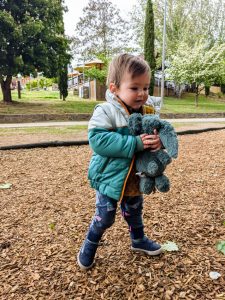 I fetched the car then we all met down at the “big playground” for a final play there. Rach and I also went down to the riverbank and skipped and threw rocks in. “It was so much fun!” Rach exclaimed when reporting back to Mum.