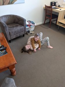 The morning after breakfast was a big clean up and packing session, of course. Luckily the crazy storms and rain of last night (Sarah did spend a little time in the other double bed in the kids room to comfort Rachael – Seth slept through it no worries!) had dissipated during the pack up hours.