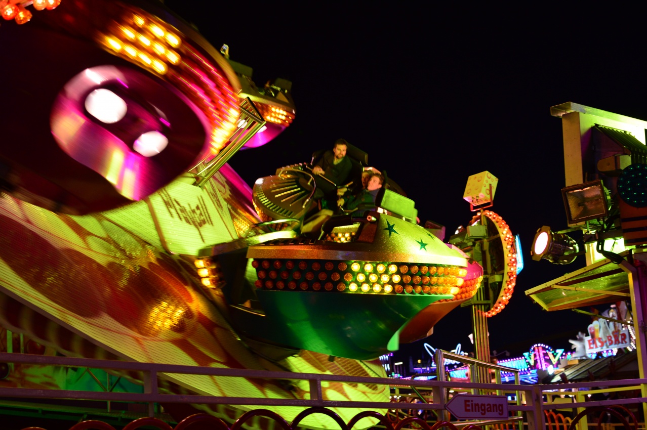 We then went on to ride the Playball. It’s a small ride but certainly packs a lot of g-forces. Think Disneyland’s tea cups on crack and on a raised, tilted platform and you’ll be getting somewhere close. I think it was perhaps an involuntary reaction to the g-forces the ride generates, but Gemma and Patto could not stop laughing! I was a bit more seasoned as I had been on it multiple times throughout the festival, and even earlier at Rosenheimer Herbstfest. It remains my most favourite ride, because no other ride generates the amount of force like it does.